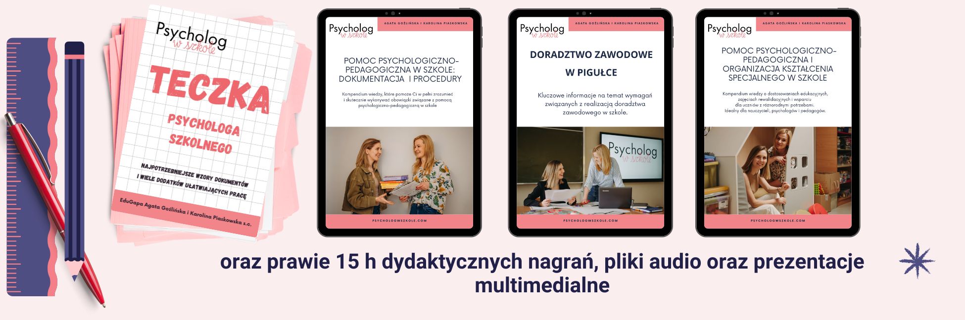 Szkolenie prowadzą doświadczone psycholożki szkolne – Agata Goźlińska i Karolina Piaskowska, założycielki @psycholog_w_szkole, które posiadają wieloletnie doświadczenie w pracy z uczniami i rodzicami oraz w prowadzeniu szkoleń dla pracowników szkół.