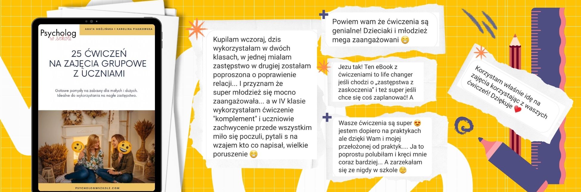 Ten ebook to nieocenione źródło inspiracji i gotowych pomysłów dla nauczycieli, psychologów szkolnych i innych specjalistów pracujących z uczniami. Dzięki niemu stworzysz ciekawe, angażujące i skuteczne zajęcia grupowe, które pomogą w rozwoju kompetencji społecznych, emocjonalnych i edukacyjnych uczniów. Z łatwością dostosujesz ćwiczenia do potrzeb swojej grupy i osiągniesz zamierzone cele edukacyjne. Pozwoli Ci szybko i sprawnie przygotować interesujące lekcje, które uczniowie pokochają. Pobierz go już dziś i zacznij tworzyć wyjątkowe zajęcia grupowe z uczniami!